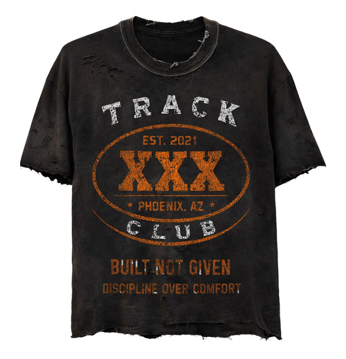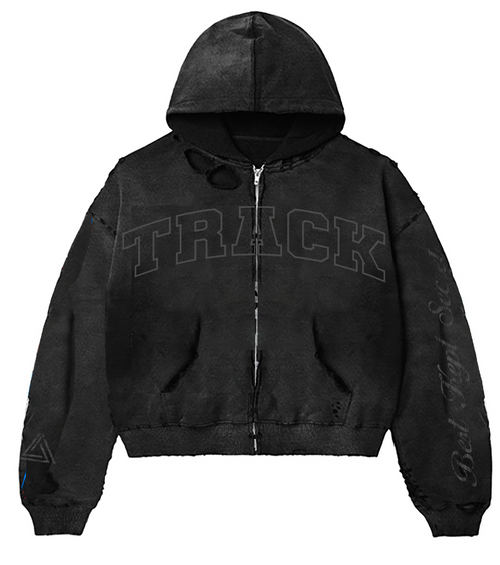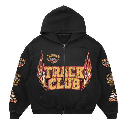 A vintage washed black base anchors the piece, detailed with flame-driven graphics. Subtle distressing adds texture and depth, reinforcing a broken-in feel that pairs naturally with the Core Flame Zip Up or stands on its own.